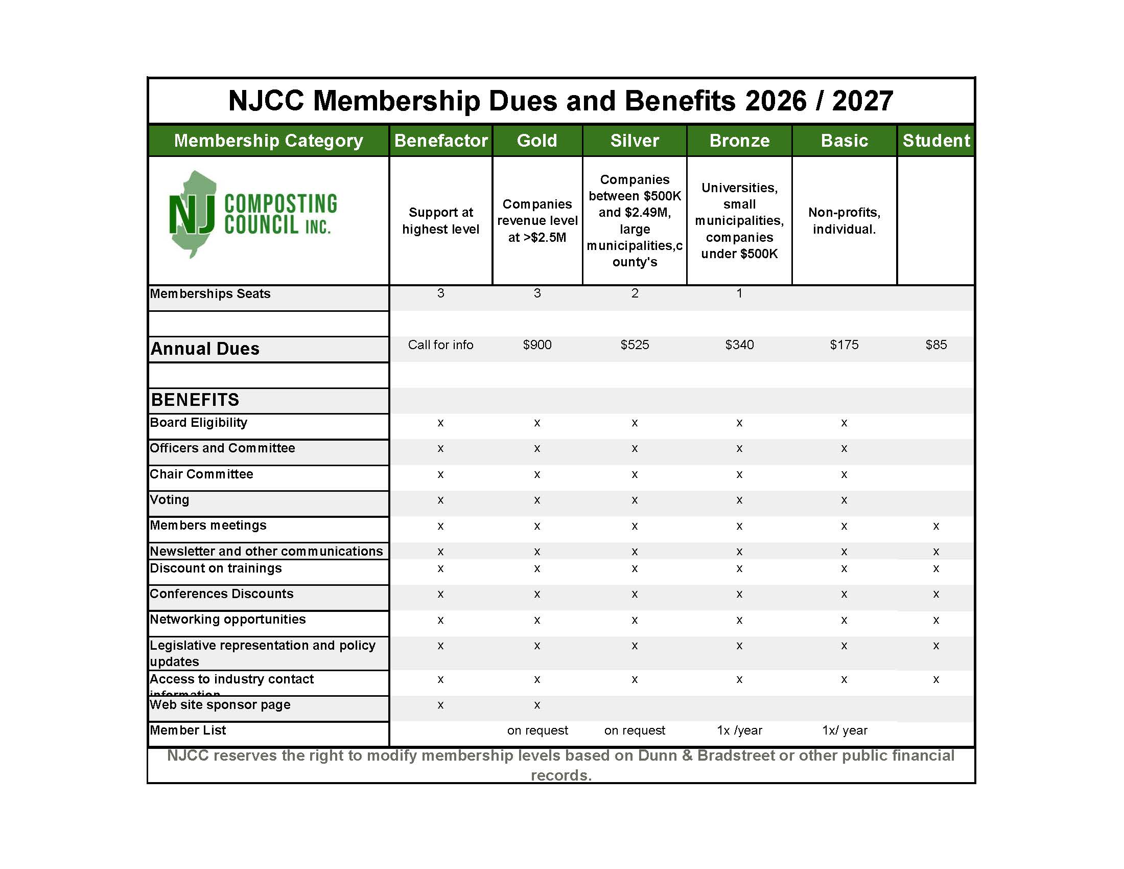 Note: Contributions to the New Jersey Composting Council are not tax deductible as a charitable contribution. The New Jersey Composting Council does not solicit or accept funds earmarked for political purpose.